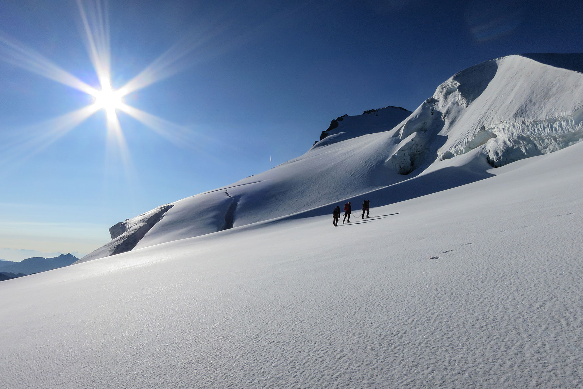 gute Kondition, Hochtouren-Erfahrung, Kletterstellen bis zum II Schwierigkeitsgrad